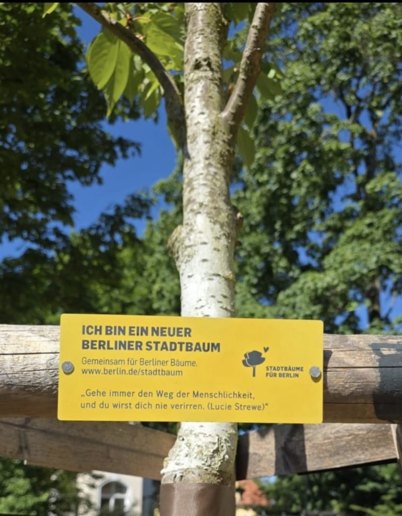 Auf dem Lucie-Strewe-Platz in Berlin-Zehlendorf fand kürzlich eine besondere Baumpflanzung statt, bei der zwei japanische Zierkirschen gepflanzt wurden. Die Bäume wurden von der Lucie Strewe Stiftung gespendet. Eine Beschilderung verweist auf die Namensgeberin der Stiftung sowie deren Lebensmotto.  Neben der bereits vorhandenen und ebenfalls von der Stiftung gespendeten Bank lädt der Platz nun einmal mehr zum Verweilen und Nachdenken über Lucies Strewes Taten und Worte ein.
