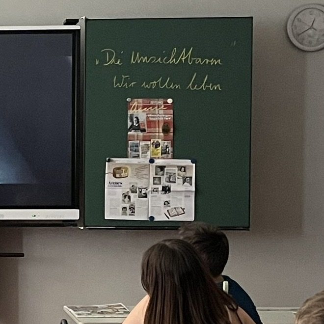 „Zur Eröffnung des Anne Frank Tages zeigte unsere Schule in diesem Jahr in den drei achten Klassen den Kurzfilm zu Lucie Strewe sowie den von der Lucie Strewe Stiftung bereitgestellten Film ‚Die Unsichtbaren – Wir wollen leben‘. Es ist ein Film, welcher unserer Schülerinnen und Schüler sehr berührte und nachdenklich machte.