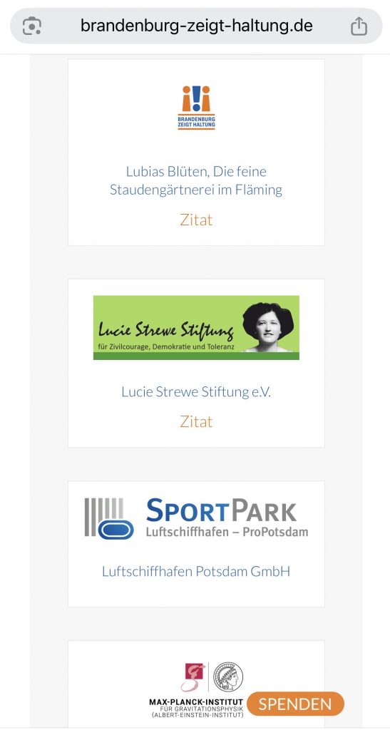 Lucie Strewe Stiftung unterzeichnet Aufruf „Brandenburg zeigt Haltung“